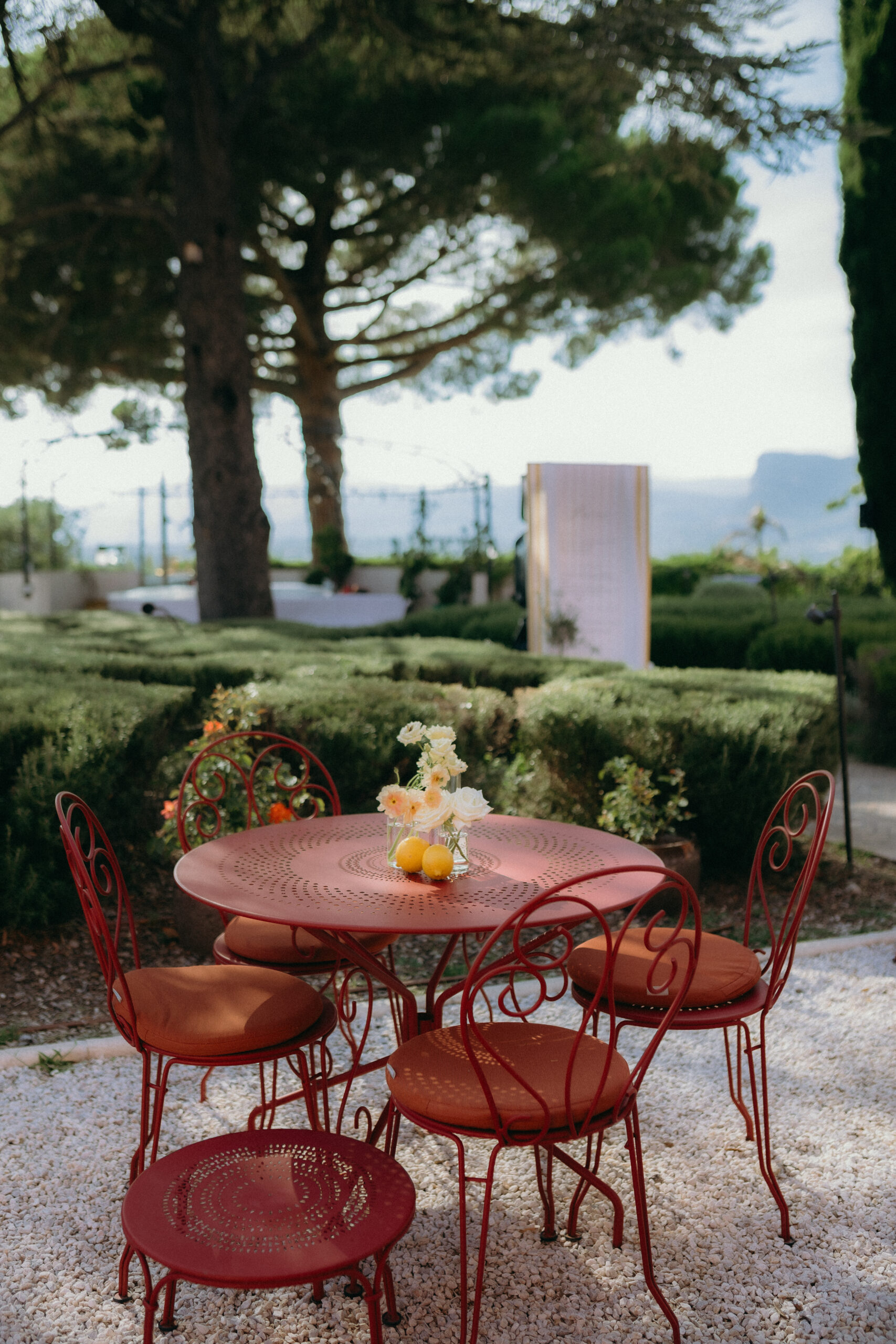 Le design toscan met à l’honneur les couleurs inspirées de la terre pour apporter un charme rustique au luxe du Chateau Crémat. Une palette colorée aux notes pep’s orange, blanc et jaune & une touche de French Riviera : rayures, paniers, citrons.